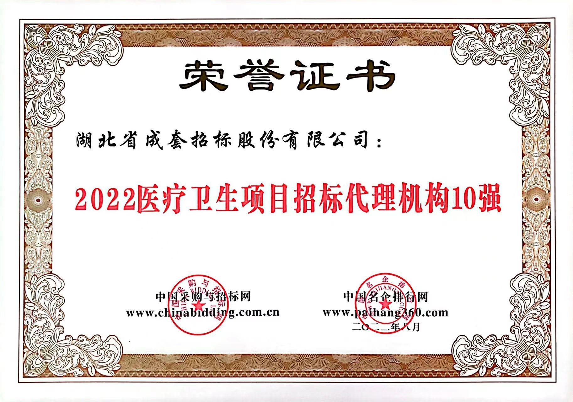 2022医疗卫生项目招标代理机构10强