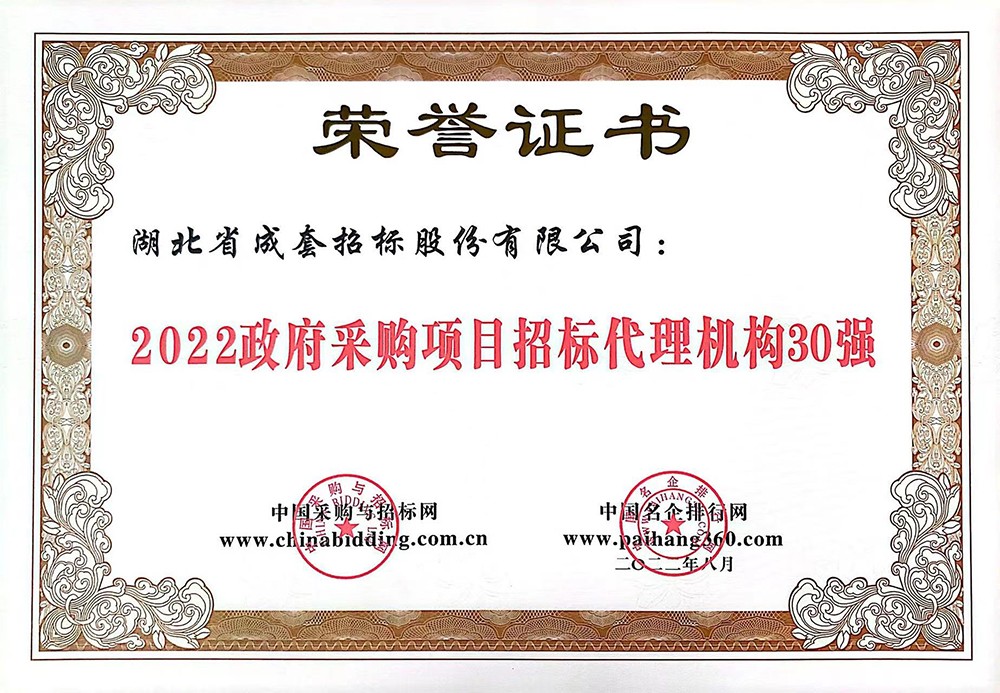 2022政府采购项目招标代理机构30强