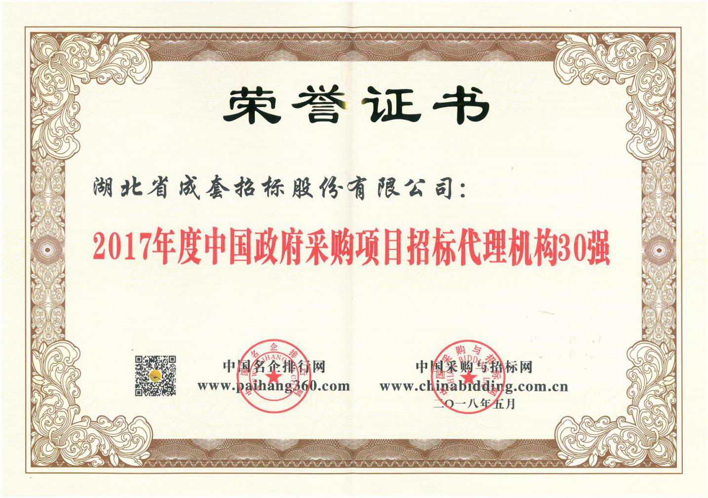 2017年度中国政府采购项目招标代理机构30强